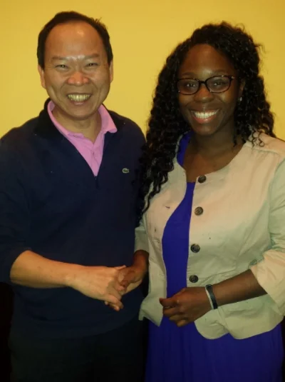 Getting back to the event. The feast consisted of an assortment of cuisine including numbing noodles, almond chicken, steamed buns with custard and egg filling, fried eggplant, and the list goes on. 2 hours and one full stomach later, my body emitted that long sigh that signals that it had reached its maximum capacity of food consumption and it was time for a nap. Not so much as a second goes by, and it was announced that Chef Peter Chang himself had been in the kitchen cooking all of the food for us. As Chef Chang came out to greet us, a bellowing of cheers and applaud filled the restaurant, and my day had been made.